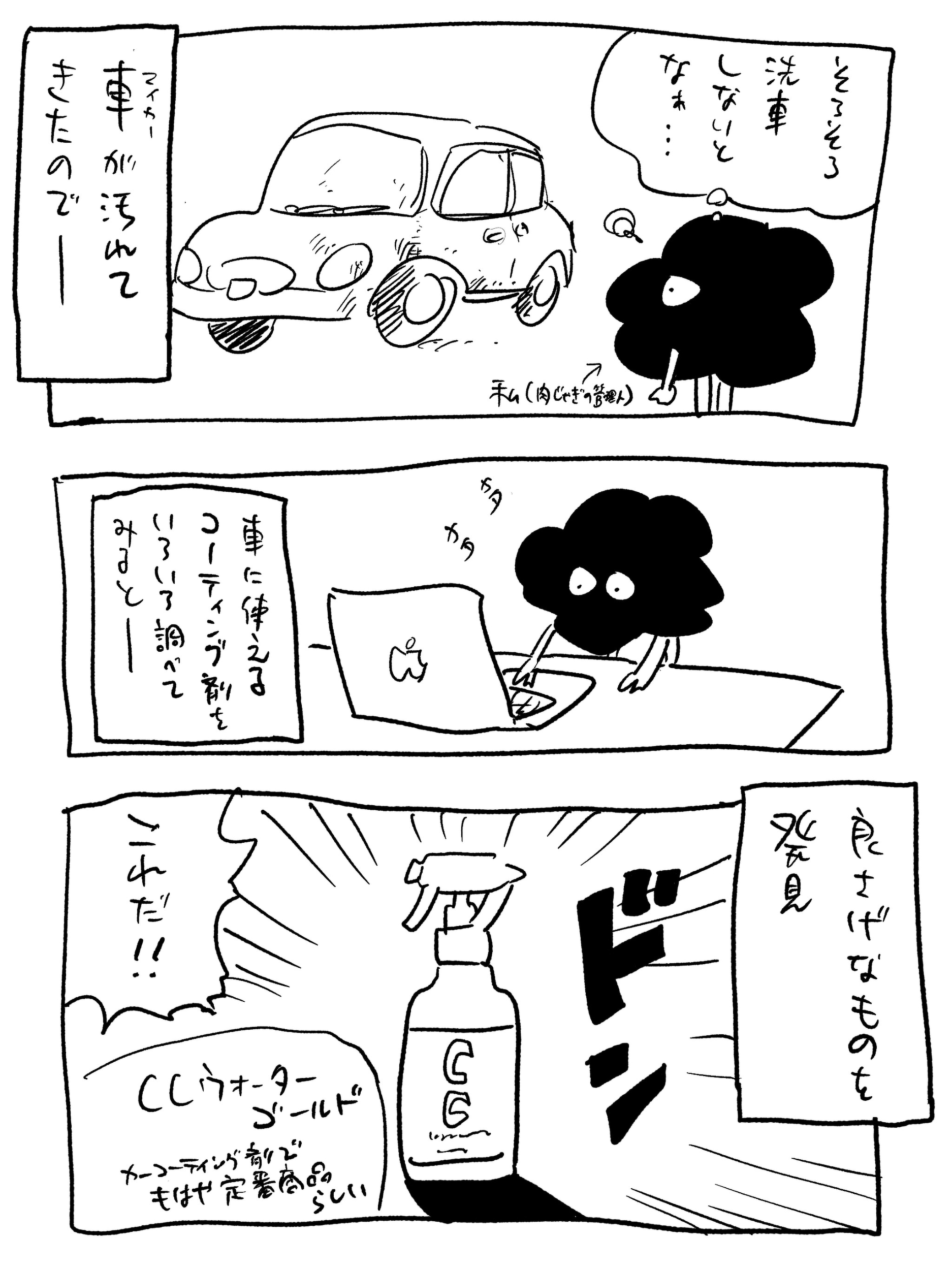 上の漫画にも描いた通りですが、カーコーディング剤のCCウォーターゴールドが車の外装だけではなくて内装にも使える、ということでギターアンプのクリーニングにも使ってみました。