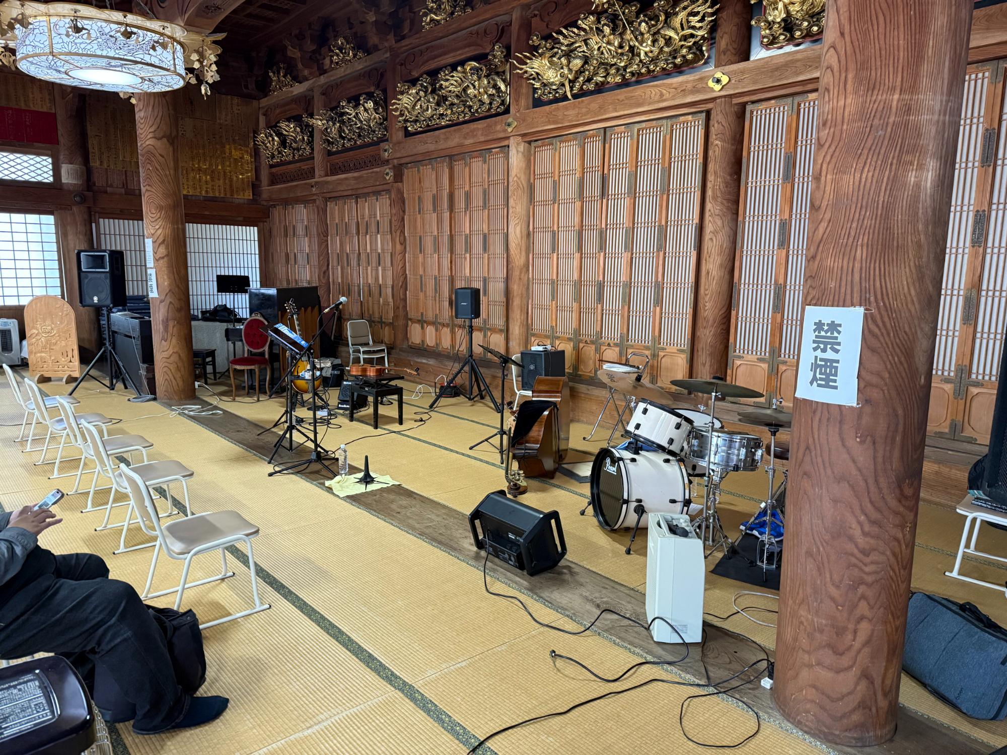 お寺だとバーやカフェなどと比べてあまり緊張しないというか、独特のゆったりとした空気が流れていて楽しく演奏できました。