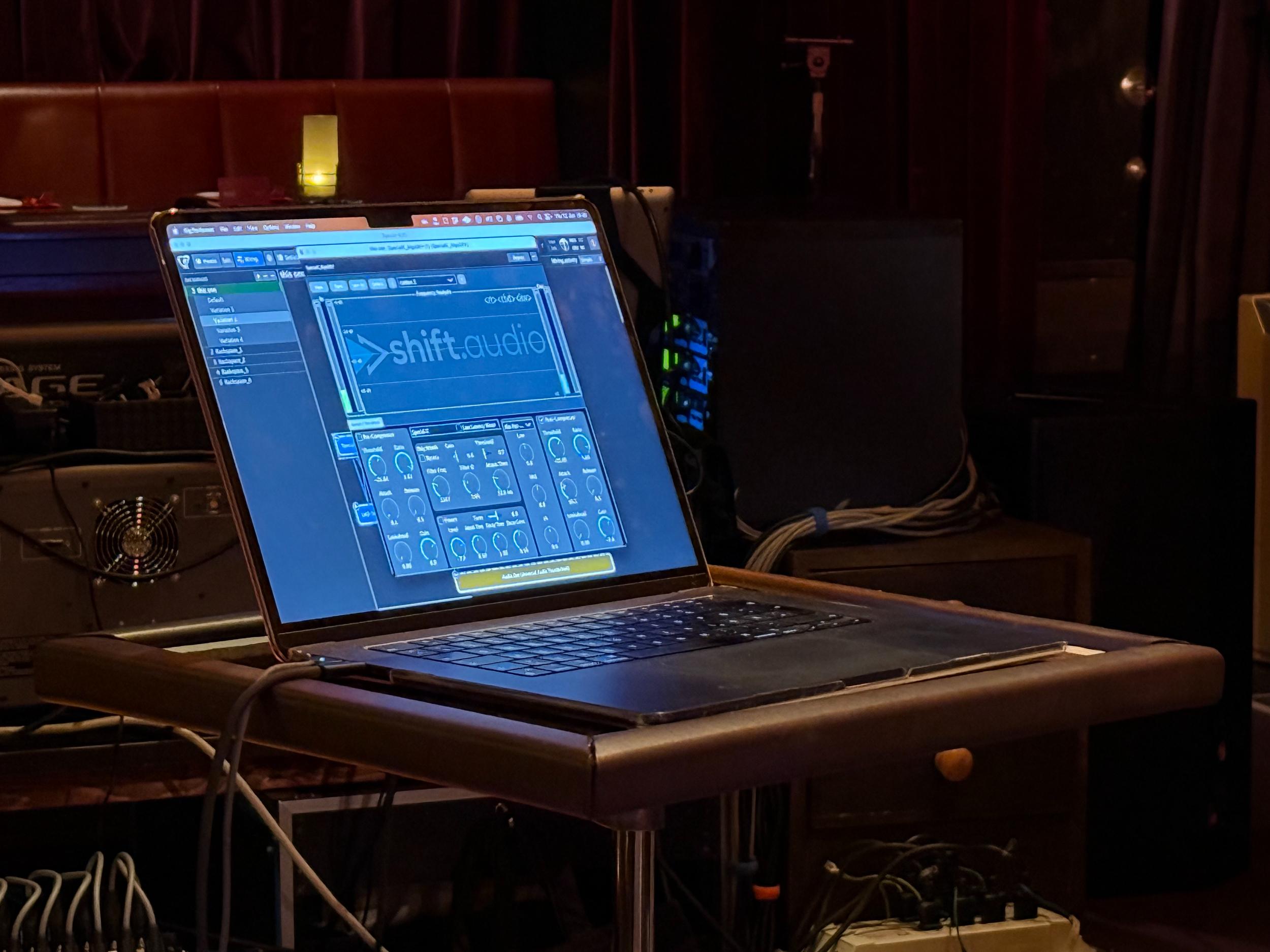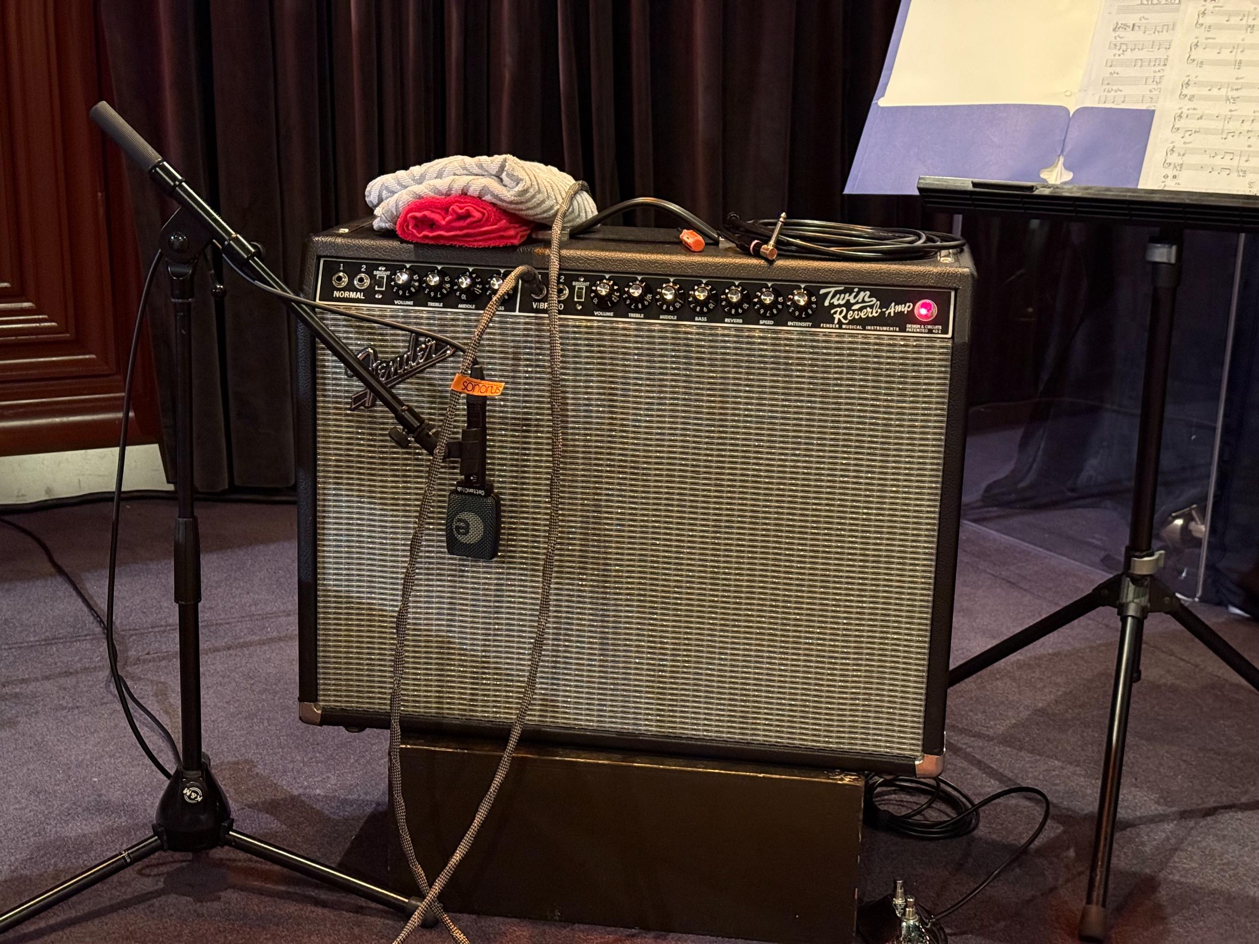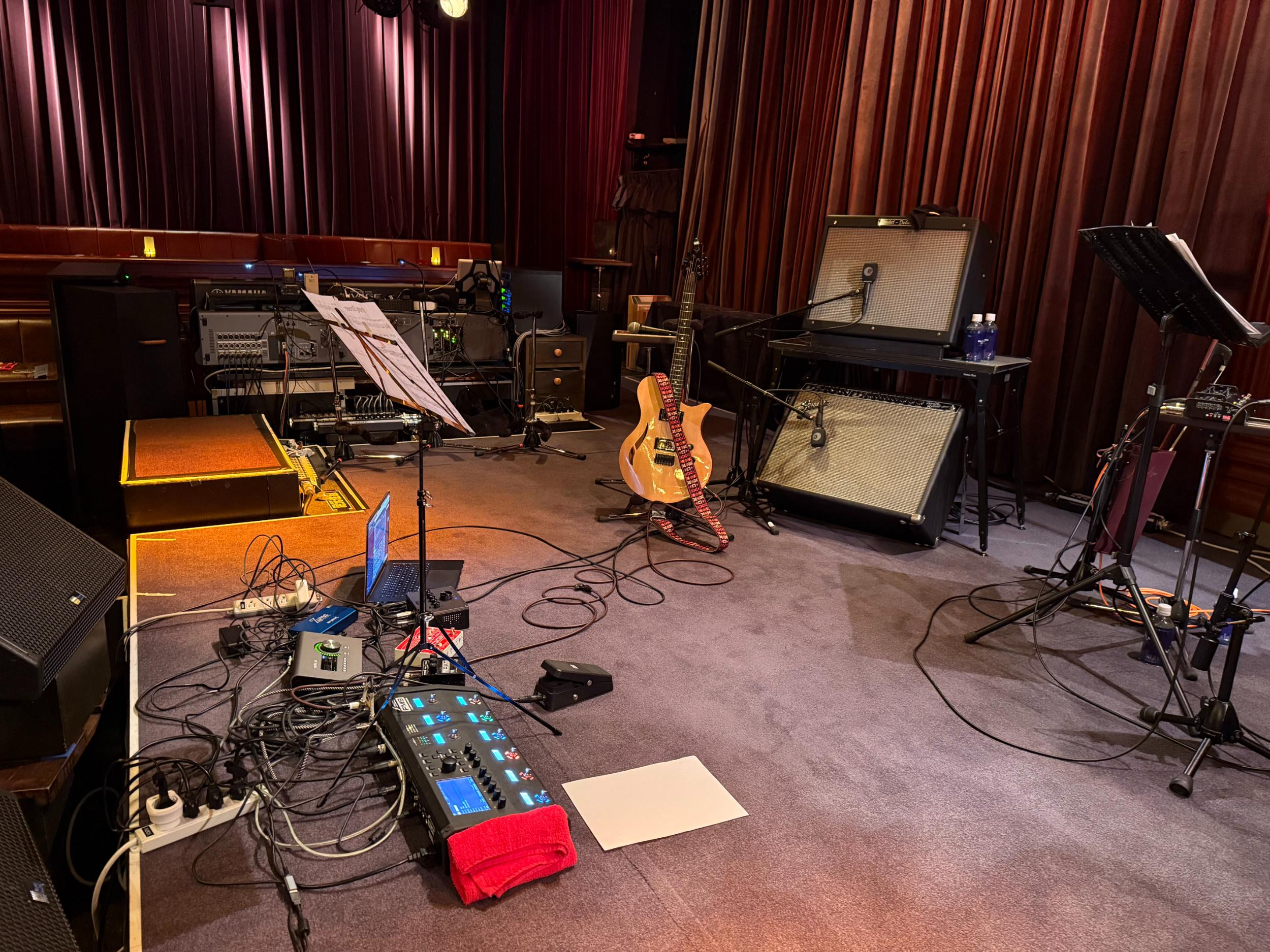 パソコンが立ち上げてあって、音源かエフェクトを組み込んであり(詳細は不明・下に写真あり)、『ここまできたか…』というセッティングだったのが印象的です。