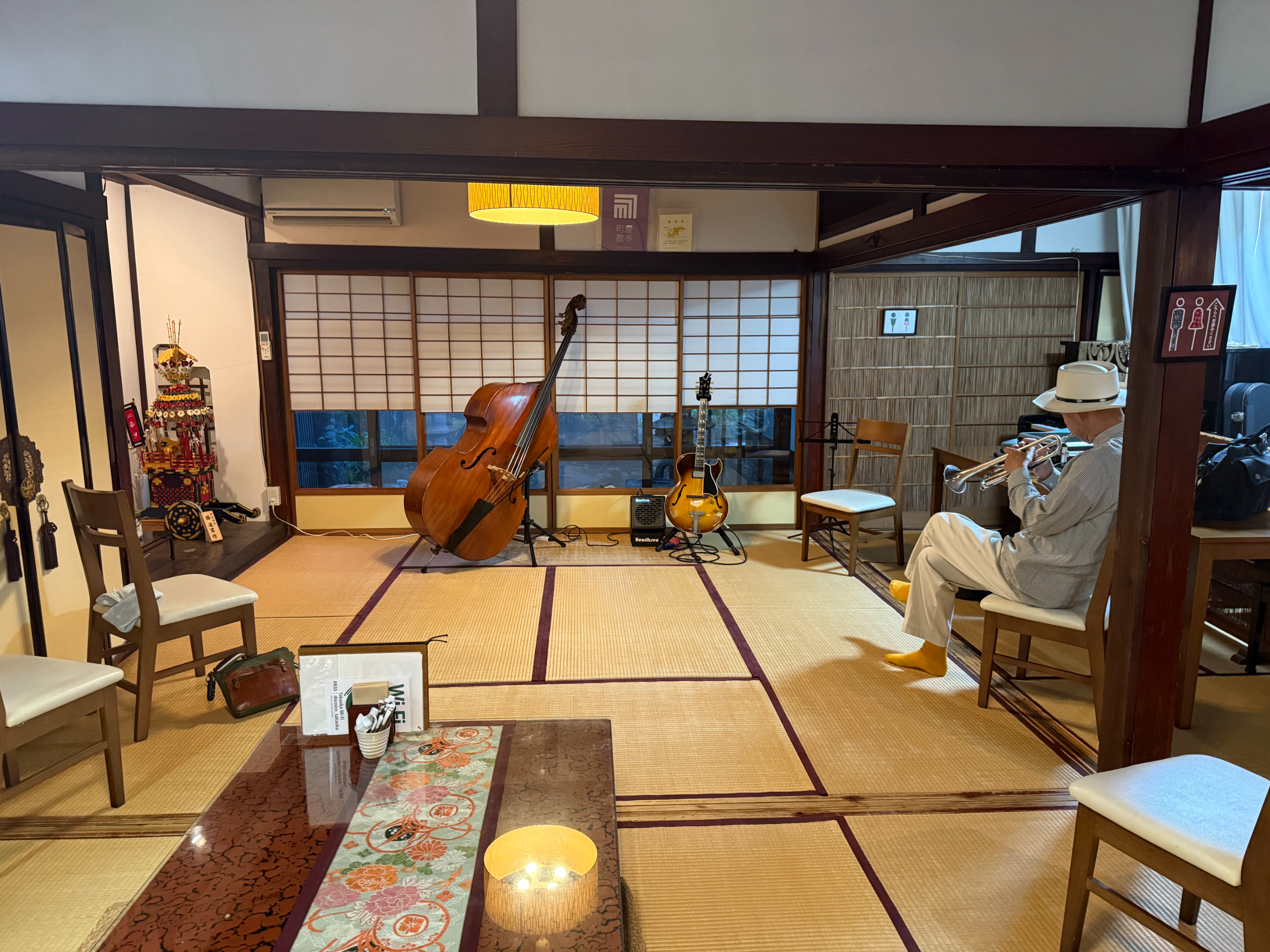 唐口一之トリオ ライブ 2025/7/2-7/3 2025.07.05 管理人ブログ 7/2 19:30〜 場所:Tsunag.(富山県富山市中央通り1-6-3) Tsunag. SPECIAL JAZZ LIVE 唐口一之(tp) 岡本勝之(ba) 川邉マナブ(gt) 7/3 19:30〜 場所:山町茶屋(富山県高岡市木舟町38) 山町茶屋 SPECIAL JAZZ LIVE 唐口一之(tp) 岡本勝之(ba) 川邉マナブ(gt) ・・・・・ 関西の名トランペットプレイヤー・唐口一之さんとのトリオでの二日間のライブでした。 お越しいただいた皆様ありがとうございました。