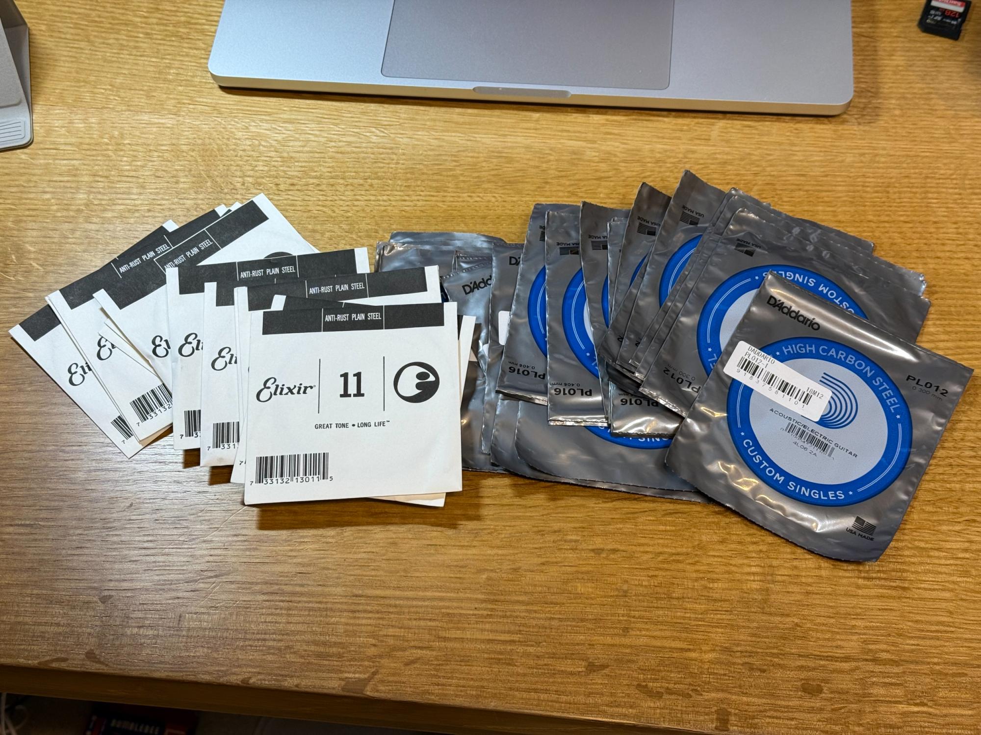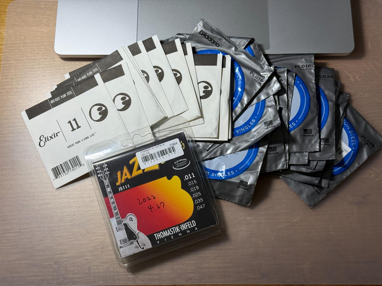 ↑大量のバラ弦(エリクサーとダダリオ)。
