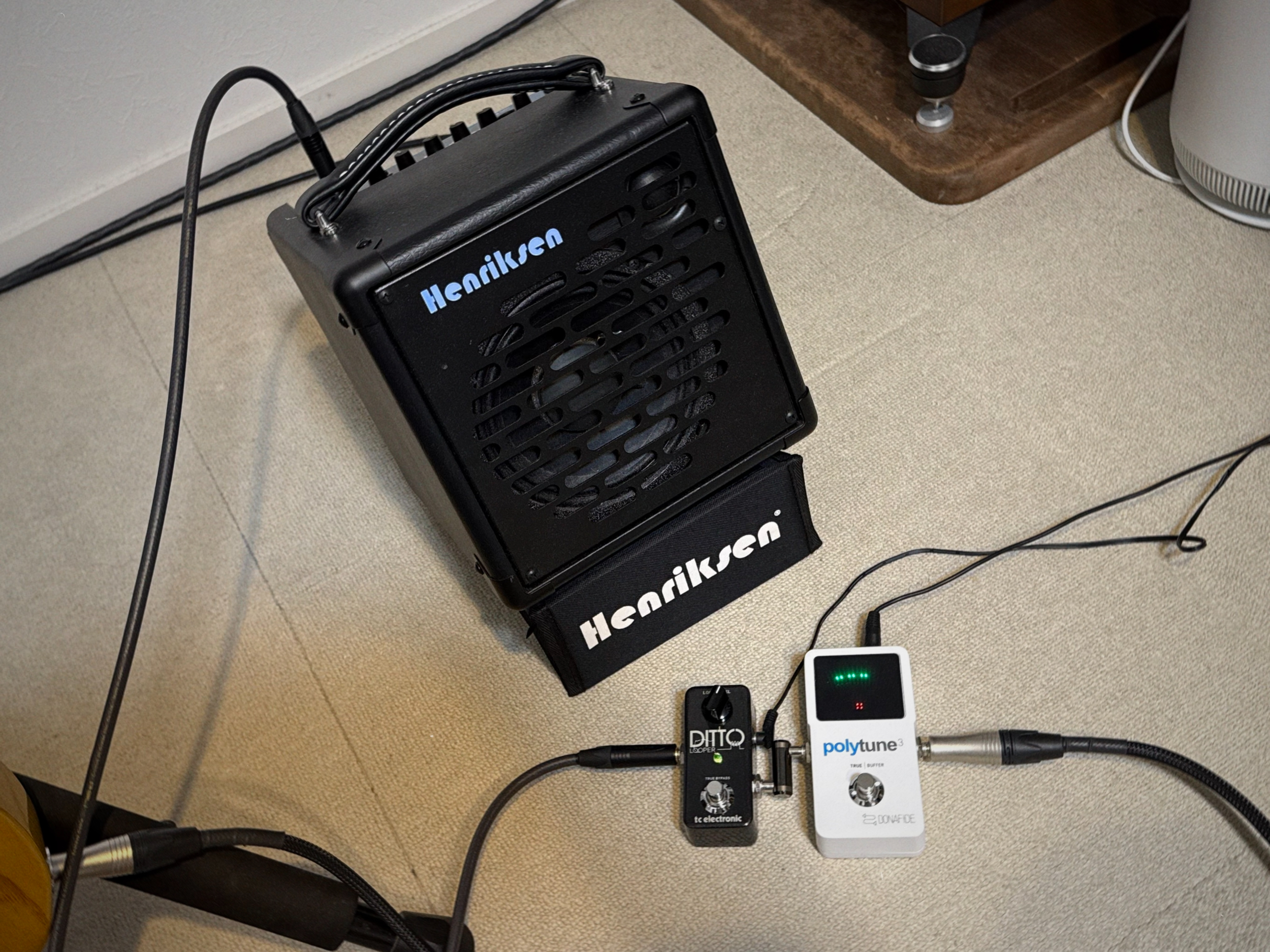 ギター > チューナーペダル(polutune) > ルーパーペダル(DITTO) > アンプ(Henriksen)