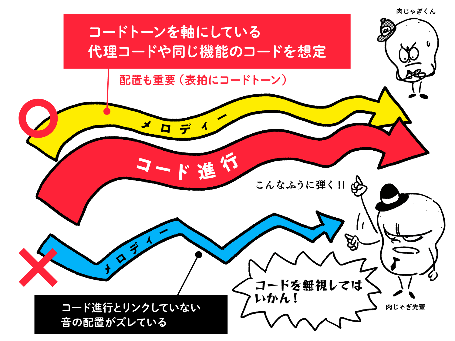 - コード進行とフレーズ(メロディー)が一致している