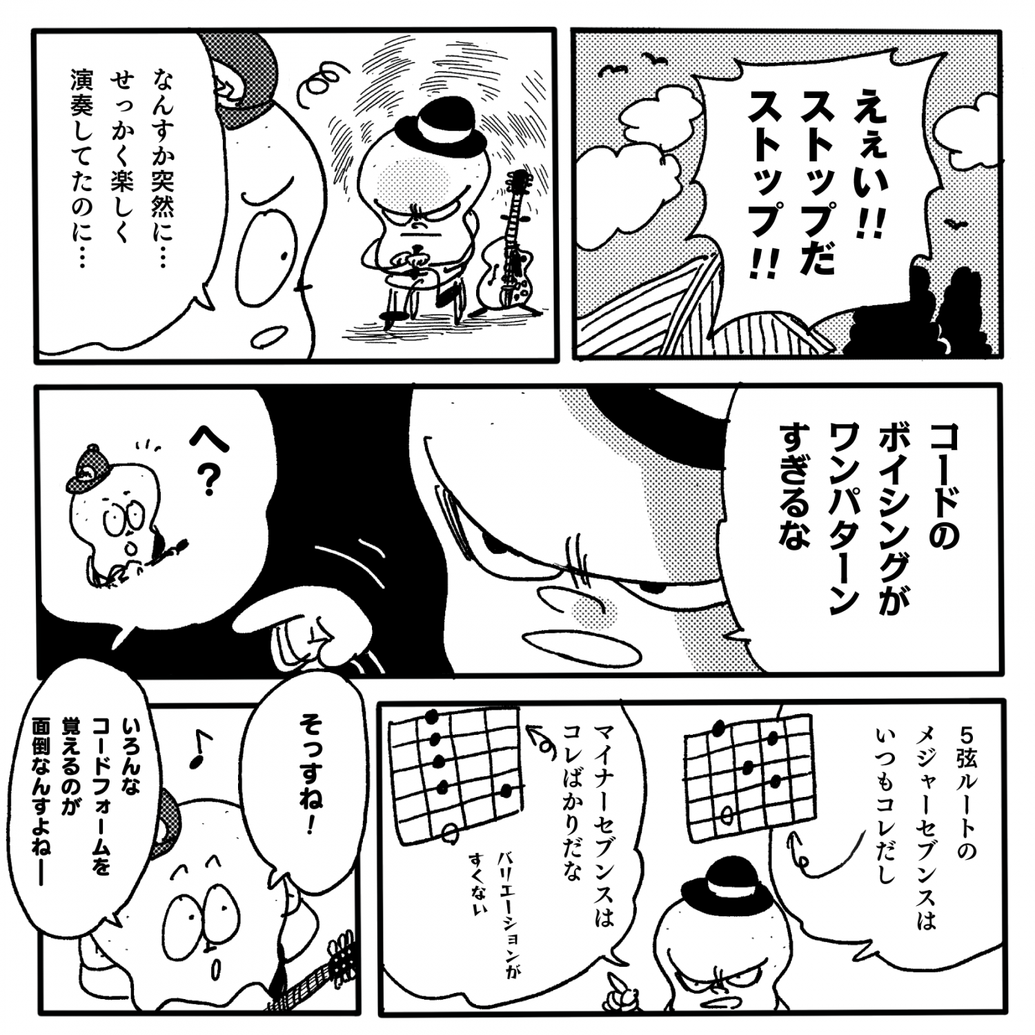 どシンプルに言えば、より美しいハーモニーを出すためにいろいろ工夫してコードを弾く、ということですね。