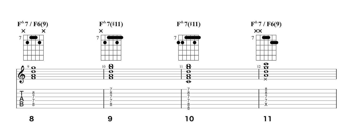 8はF6(9)ですが、メジャーセブンス上で問題なく使えます。