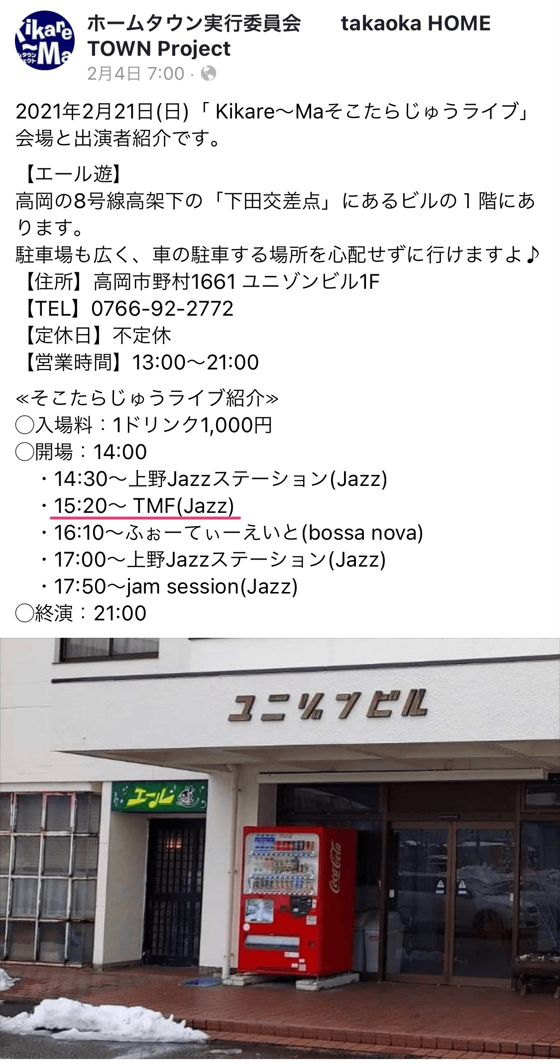 『そこたらじゅうライブ』という富山県高岡市で開催されるイベントでのライブです。