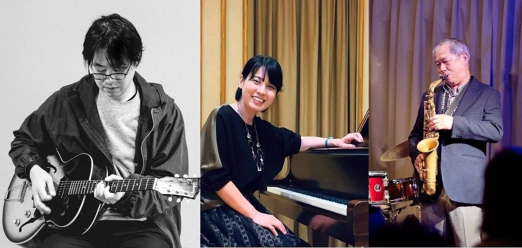 川邉マナブ(ギター)、鍛治ミツオ(アルトサックス)、桑原晶子(ピアノ)